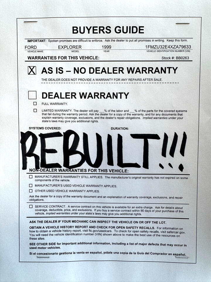 Vehicle Inquiry for 1999 Ford Explorer 4dr 112" WB Eddie Bauer
